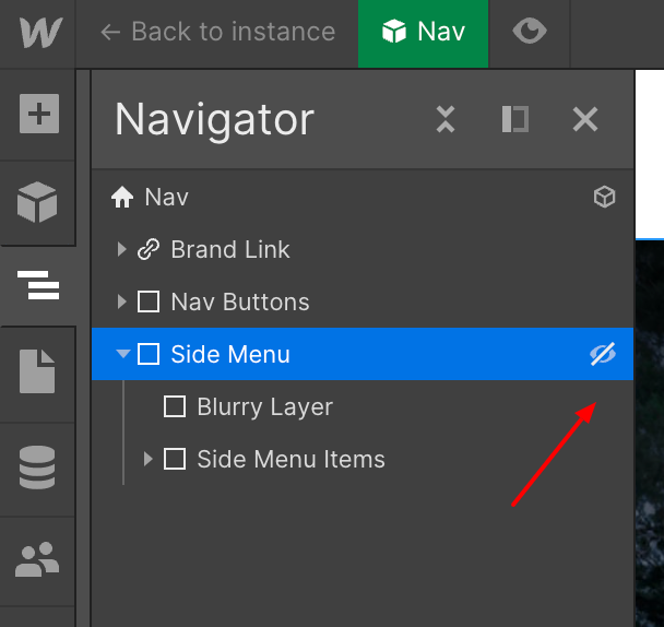 Step 1: Select the "Side Menu" element under the "Nav Symbol".